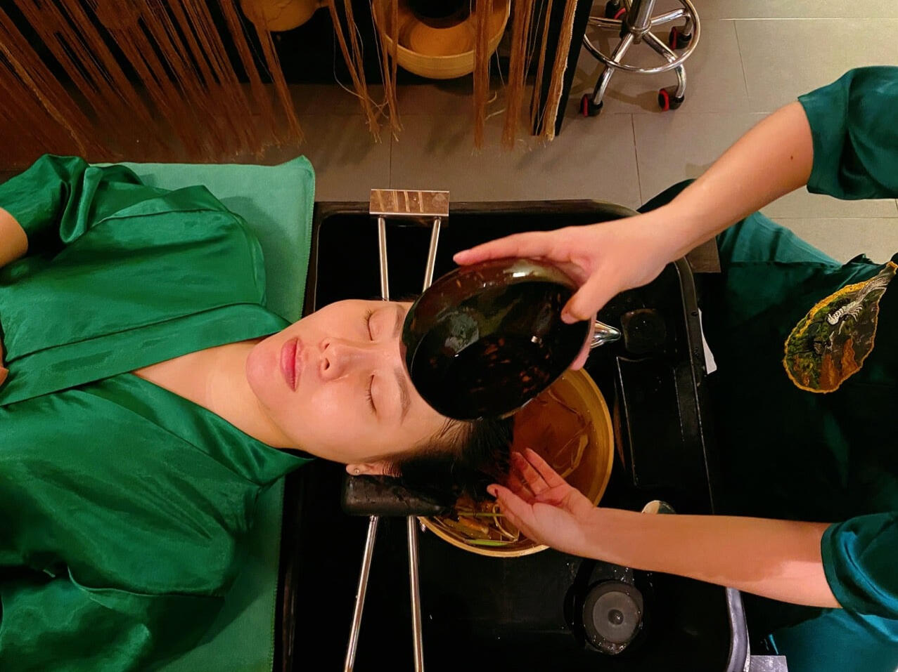 This multi-step hair and scalp treatment uses a warm, fresh-made herbal blend created from carefully selected healing plants.